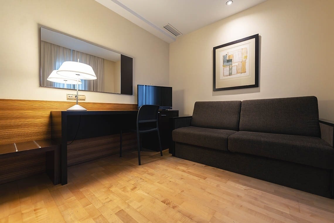 The Junior Suite rooms are designed to enjoy greater space and can comfortably accommodate up to 4 people in a double bed and two single beds or 3 single beds.