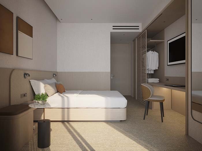 Situada en la Sky Tower, entre la 1ª y la 8ª planta, esta habitación presenta un diseño mediterráneo contemporáneo que combina elegancia y sofisticación. Con capacidad máxima para 2 personas, su ambiente luminoso y refinado ofrece un espacio exclusivo con terraza y vistas laterales al Mediterráneo, ideal para quienes buscan una experiencia superior en un entorno elevado.