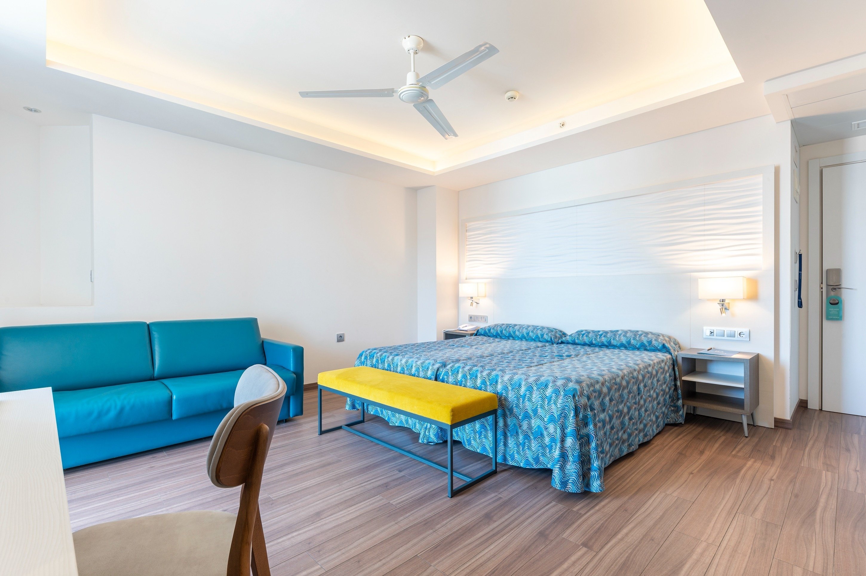 Las habitaciones XL son las más espaciosas del hotel y pueden alojar hasta 3 adultos y 1 o 2 niños (máximo 4 personas). Estas cuentan con dos camas individuales y un sofá cama doble. Disponen de balcón con vistas al mar.